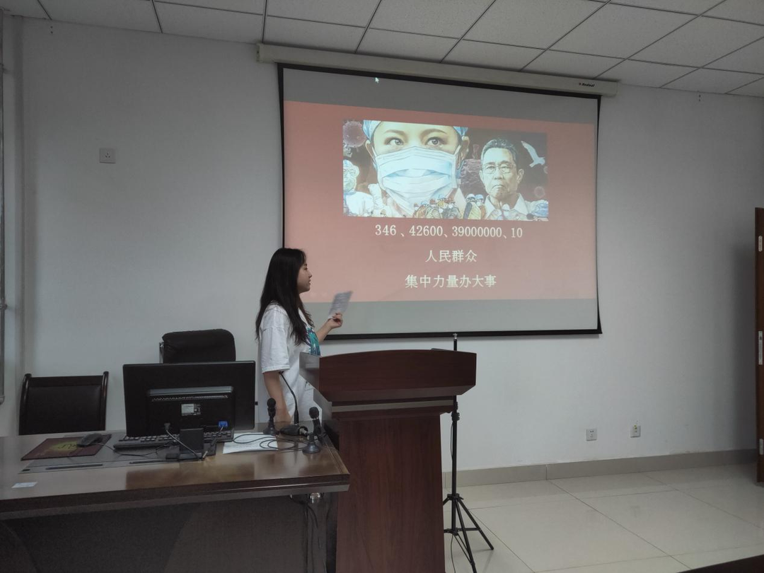 于佳丽以《不忘初心、牢记使命——学习党史、新中国史、改革开放史、社会主义发展史》为主题,从是什么、为什么、如何做三个维度就“四史”内容展开具体介绍,引导同学们增强四个意识,坚定四个信念,做到两个维护。