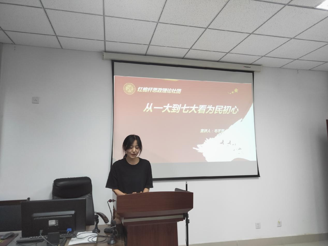 毛苓萱以《从一大到七大看为民初心》为题,以党的第一次全国代表大会为起点,细致地梳理了中国共产党从一大到七大召开的背景,生动地讲解了新中国成立前中国共产党的艰辛历程与辉煌成就,让大家深刻感受到了中国共产党为人民、为国家服务的初心。