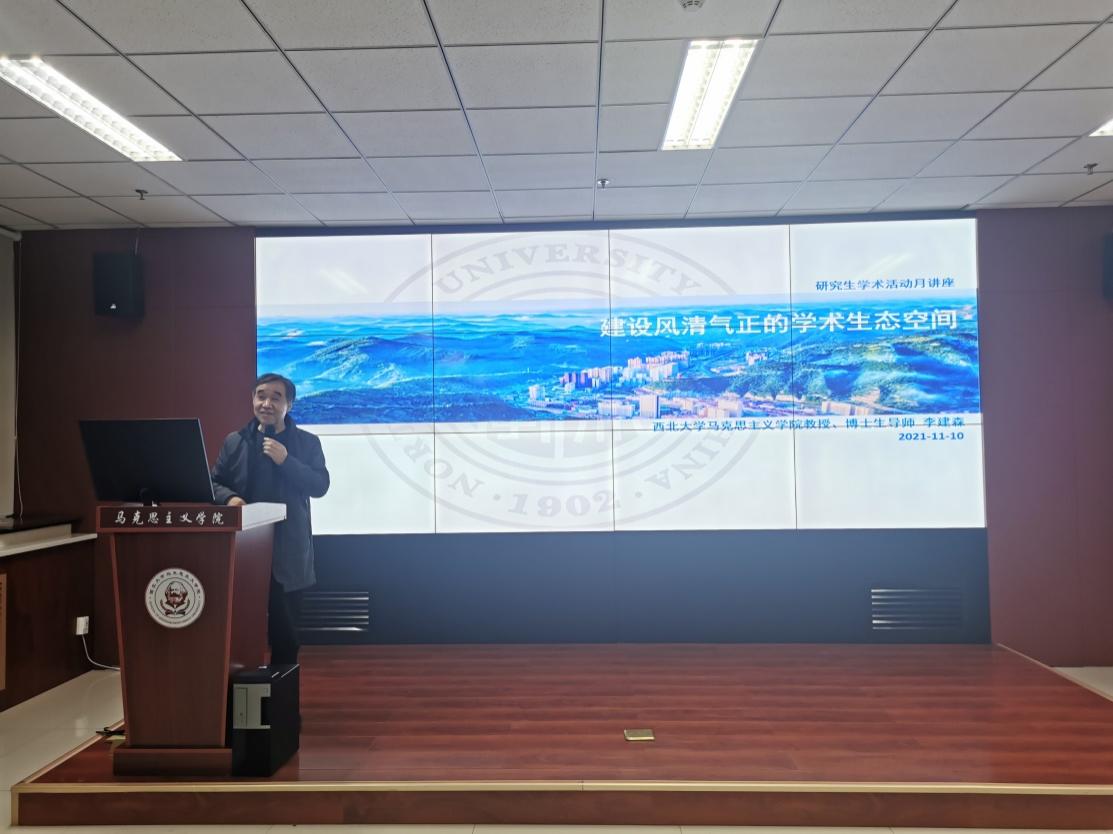 2021年11月10日,新葡萄官网第十五届学术活动月专家学术讲座在西学楼1104报告厅举办。本次讲座由李建森教授主讲,新葡萄官网2021级硕士研究生及“青马班”成员参加了此次学术讲座。