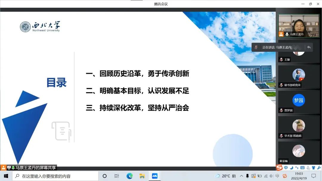 为引领教育研究生会成员胸怀崇高理想、恪守学生本分、牢记服务宗旨,按照省学联、校研究生院及校团委工作安排,2022年4月19日晚,新葡萄官网研究生会主席团组织召开春季学期研究生会工作人员培训会和各部门工作述职大会。