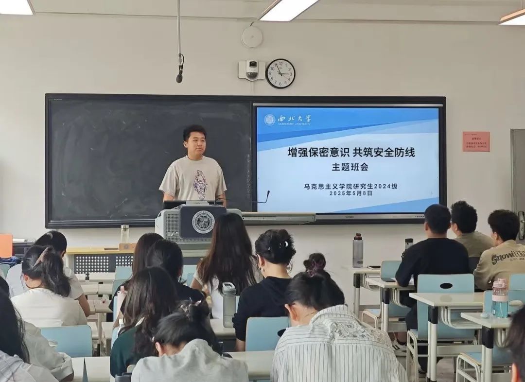 5月8日下午,新葡萄官网开展“增强保密意识,共筑安全防线”主题班会,此次班会由2024级硕士生班长常皓星主持,2024级全体学生参与。