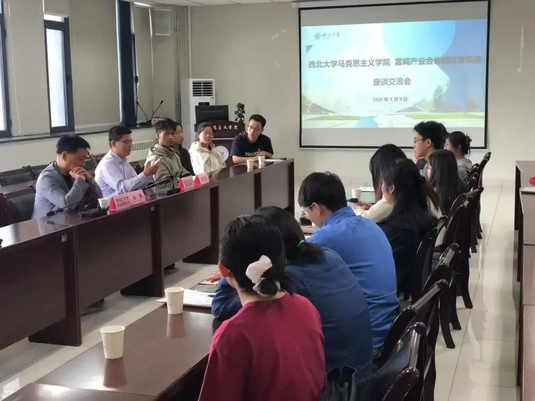 5月9日下午,富阎产业新区合作园管委会组织部副部长王图忠、陕西建工浐河实业有限公司总经理任鹏到访新葡萄官网,在学院会议室举办交流座谈会。新葡萄官网党委副书记邵平、团委书记刘娟及部分学生代表参加此次交流座谈会。
