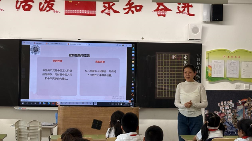 巨亚萍以《光荣的少先队》为题,带领同学们回忆入队仪式,介绍了中国少年先锋队的概况和少先队员的使命责任。