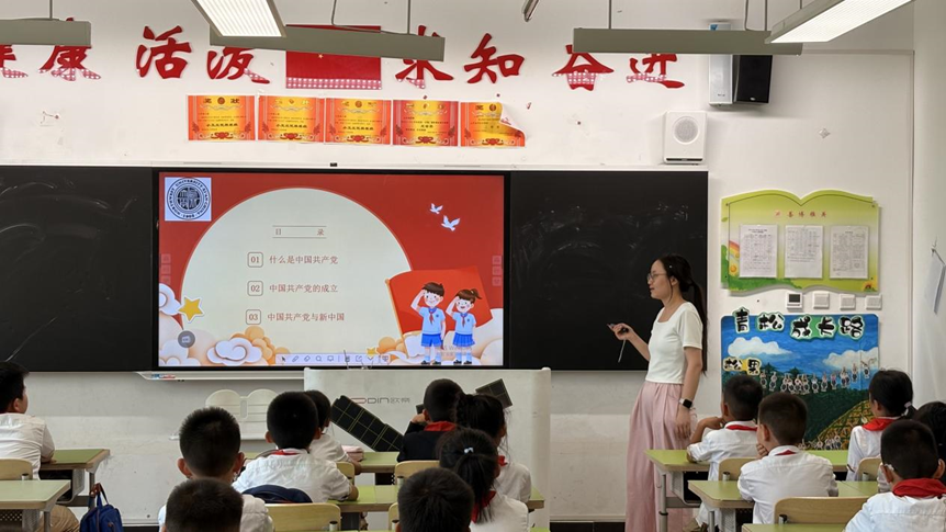 柳佳茹以《没有共产党就没有新中国》为题,介绍了中国共产党与新中国成立的小故事,讲述了中国共产党的党徽和党旗的深刻含义。