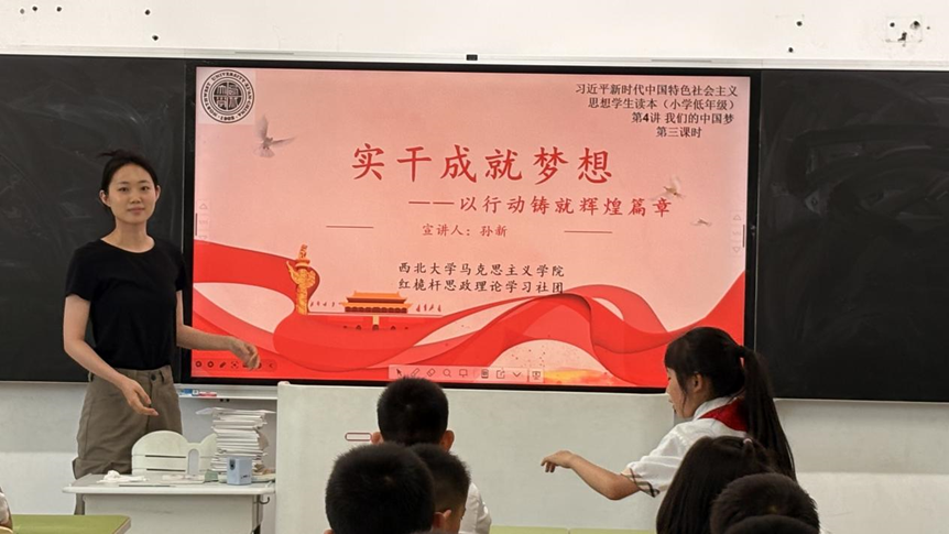 5月19日,新葡萄官网红桅杆思政理论学习社团前往西安市长安区第一小学实验小学,以《习近平新时代中国特色社会主义思想学生读本》(小学低年级)为主要内容,为二年级的小学生讲授思政课。本次活动的主讲人分别是来自2024级马克思主义基本原理、马克思主义中国化研究、思想政治教育与中国近现代史基本问题研究等专业的13名硕士研究生。