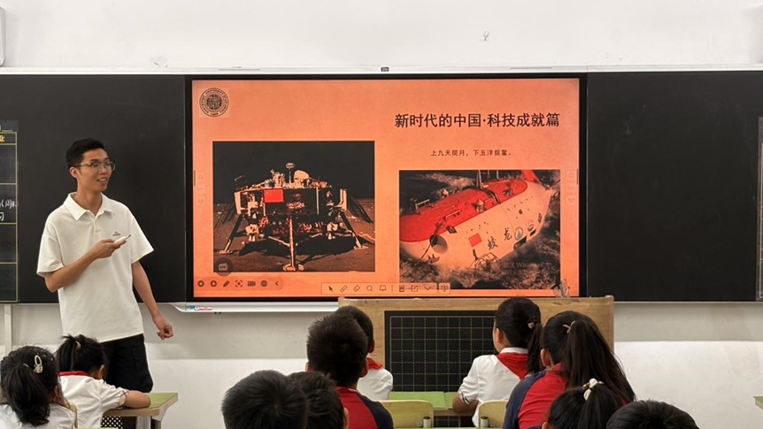 赵莹以《新时代新征程》为题,介绍了我们国家在新征程道路上翻天覆地的变化,引导同学们意识到要努力学习科学文化知识、为中国式现代化建设添砖加瓦。
