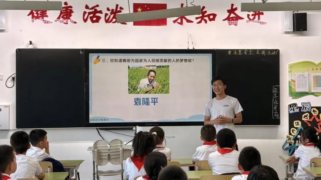 李旺盛以《我有一个梦想》为题,结合袁隆平爷爷的禾下乘凉梦,鼓励同学们树立正确的创新思维、敢于突破陈规,为实现自己的梦想而奋斗。
