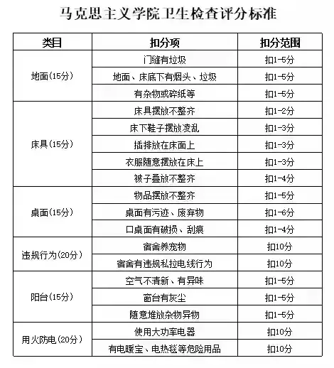 6月2日晚上,新葡萄官网开展卫生安全检查,标准如下: