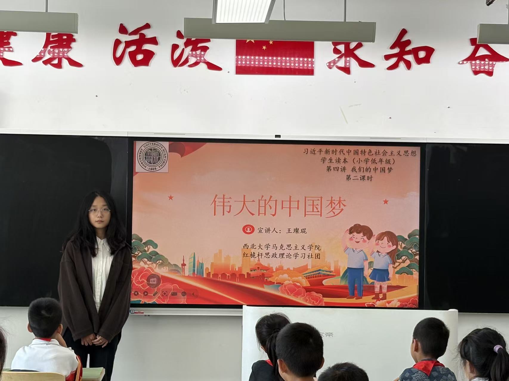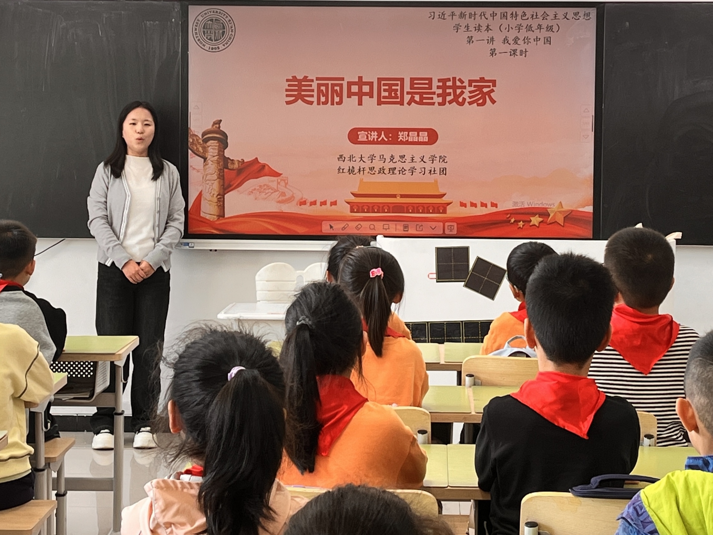 10月15日,新葡萄官网红桅杆思政理论学习社团在新葡萄8883附属小学,以《习近平新时代中国特色社会主义思想学生读本》(小学低年级)为主要内容,为二年级的小学生讲授思政课。主讲人分别是来自2025级的马克思主义基本原理、思想政治教育、马克思主义中国化研究专业的12位硕士研究生。