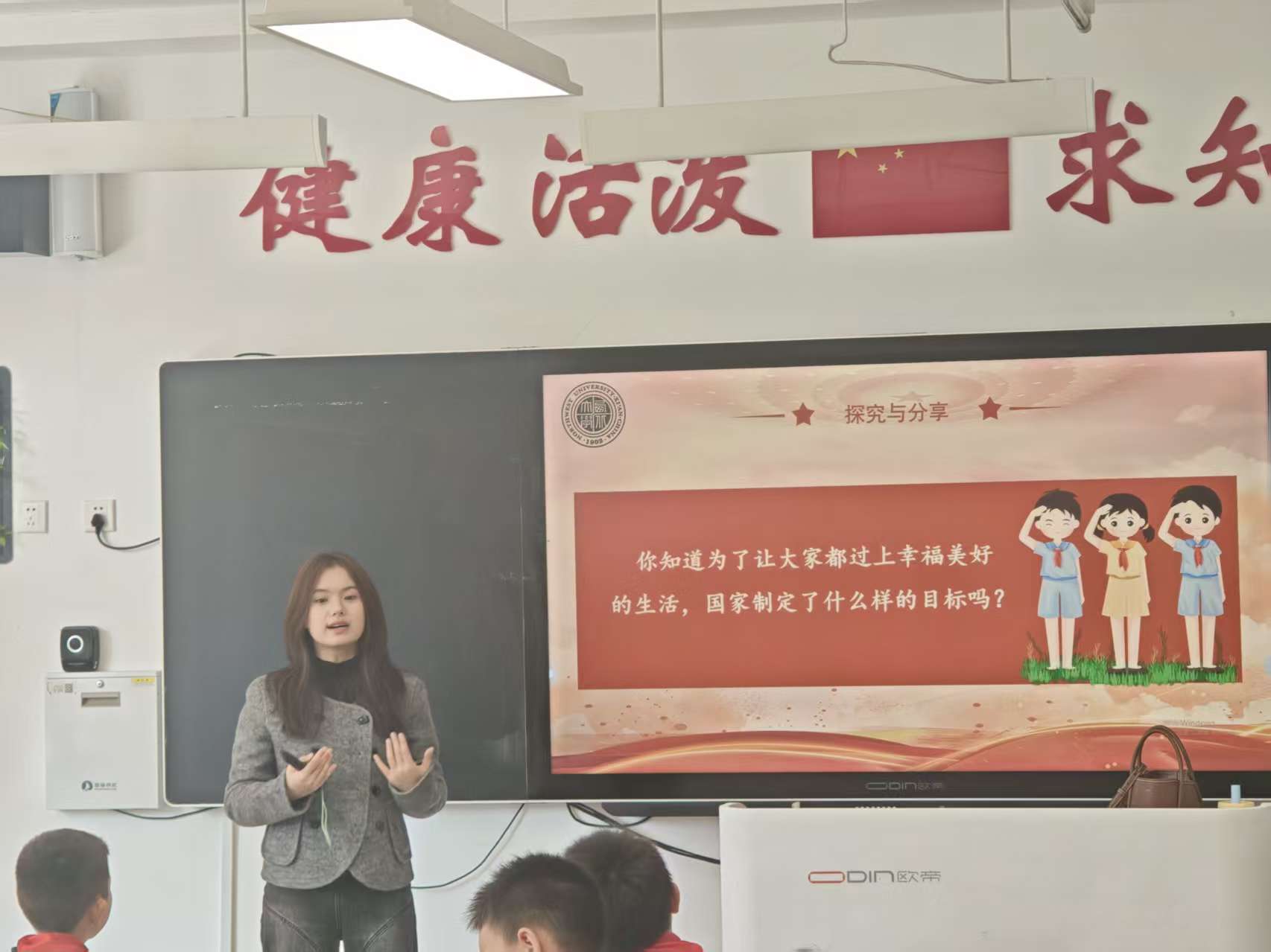 郑晶晶以《美丽中国是我家》为题,通过对国旗、国歌、国徽以及中国丰富资源的了解,学生们不仅加深了对国旗、国徽和国歌的理解与敬意,更在心中种下了爱国的种子。