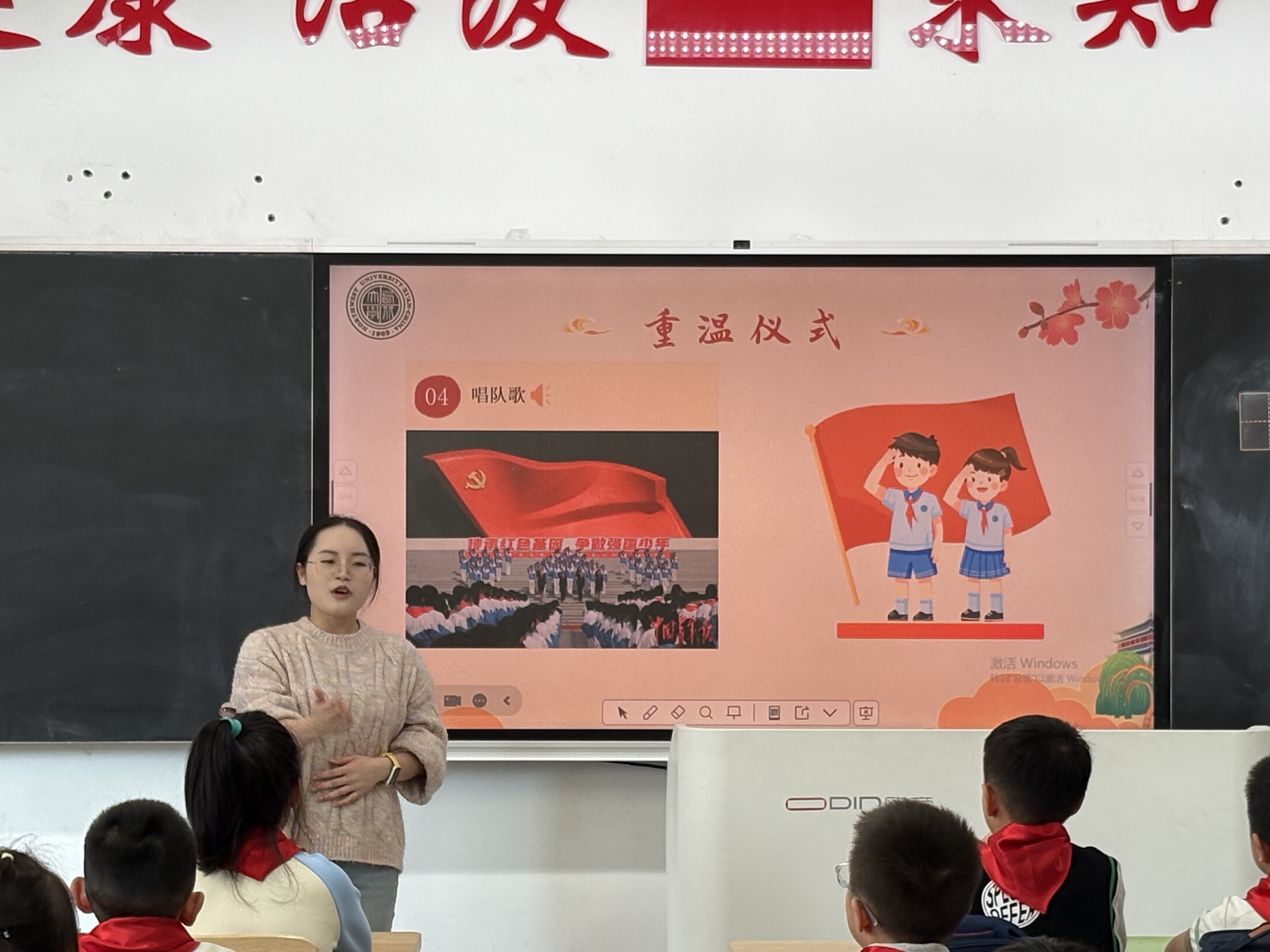 杨若莺以《光荣的少先队》为题,介绍了少先队的创立者和领导者,解释了队旗的象征意义,带领同学们回顾了入队仪式,鼓励队员们践行誓言,努力成长为新时代的优秀少先队员。