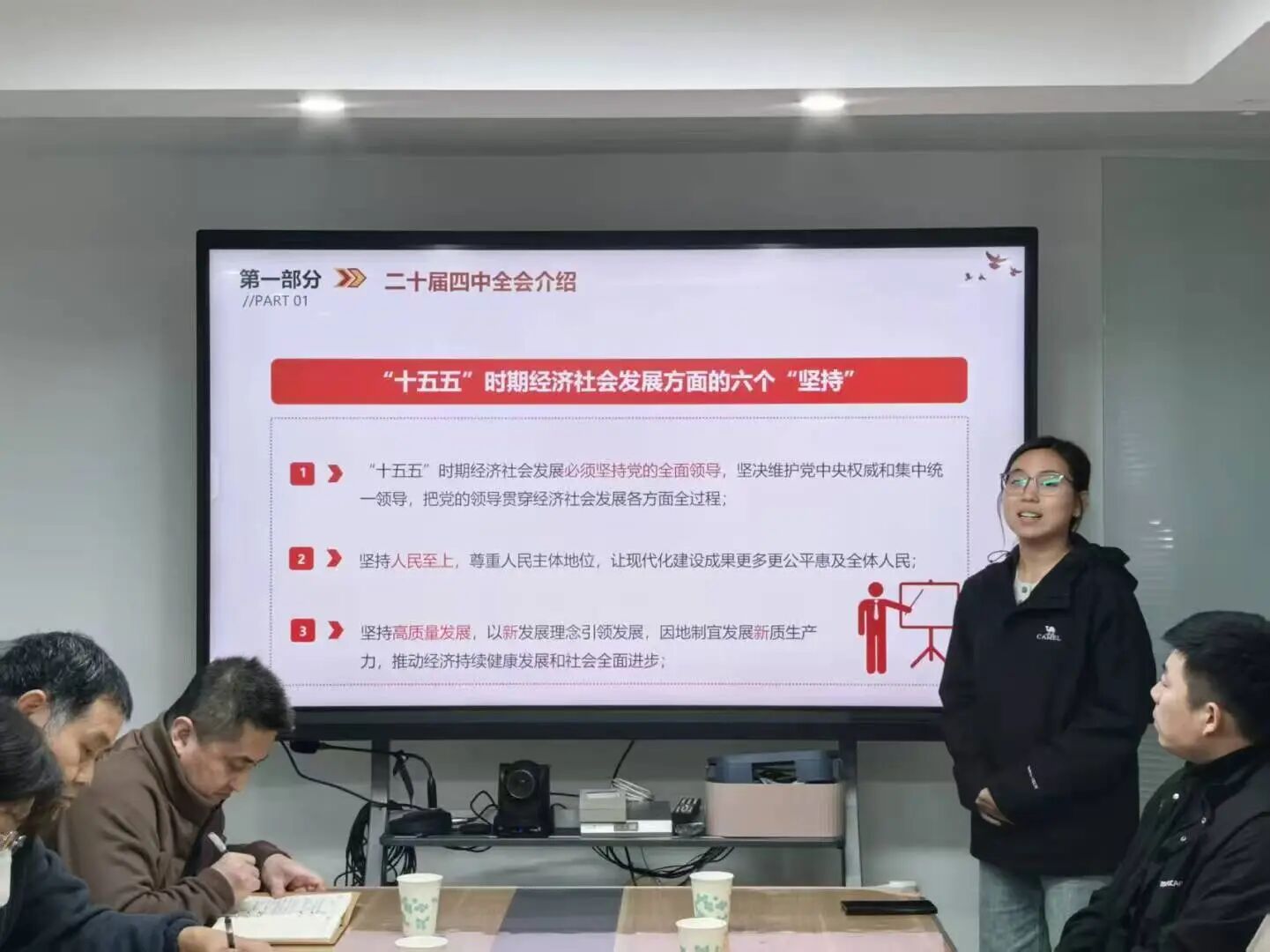 冯子怡同学以《学习贯彻二十届四中全会精神》为题,和大家一起学习了二十届四中全会精神的重要内容。她谈到,大家要把学习贯彻二十届四中全会精神同学习领会习近平新时代中国特色社会主义思想贯通起来,为实现社会主义现代化而共同奋斗。