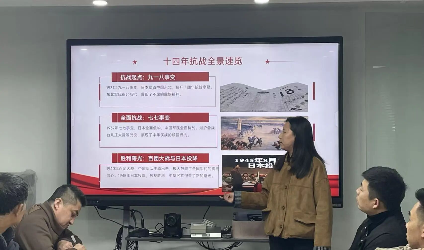 郑晶晶以《赓续抗战精神,勇担时代使命》为题,讲述了抗日战争的历史进程、抗战精神的深刻内涵以及抗战精神的现实意义。她谈到,我们既要铭记历史、敬畏先烈,更要在时代的考卷上,用奋斗书写属于这一代人的青春答案,让抗战精神在新时代绽放出更加耀眼的光芒。