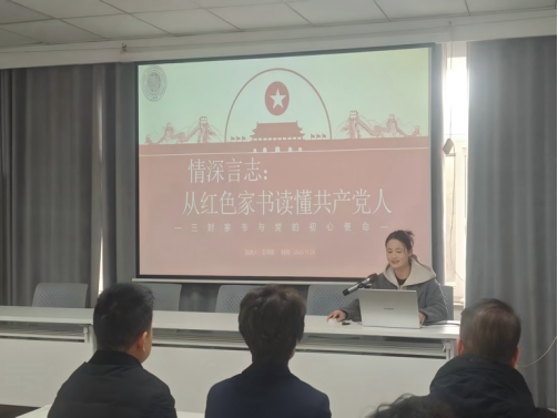 王娆娆以《情深言志:从红色家书读懂共产党人》为题,带领大家一起学习了周恩来同志的红色家书,生动阐释了共产党人坚定的理想信念和无私奉献的精神品质。最后,她呼吁大家从红色家书中汲取力量,坚守初心和使命,在各自岗位上发光发热,共建美好家园。