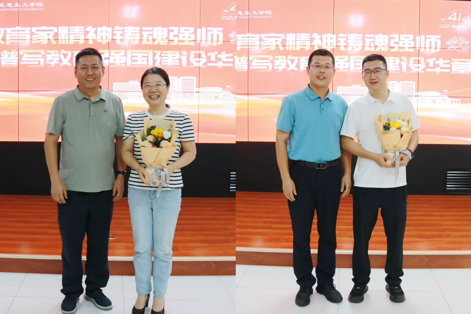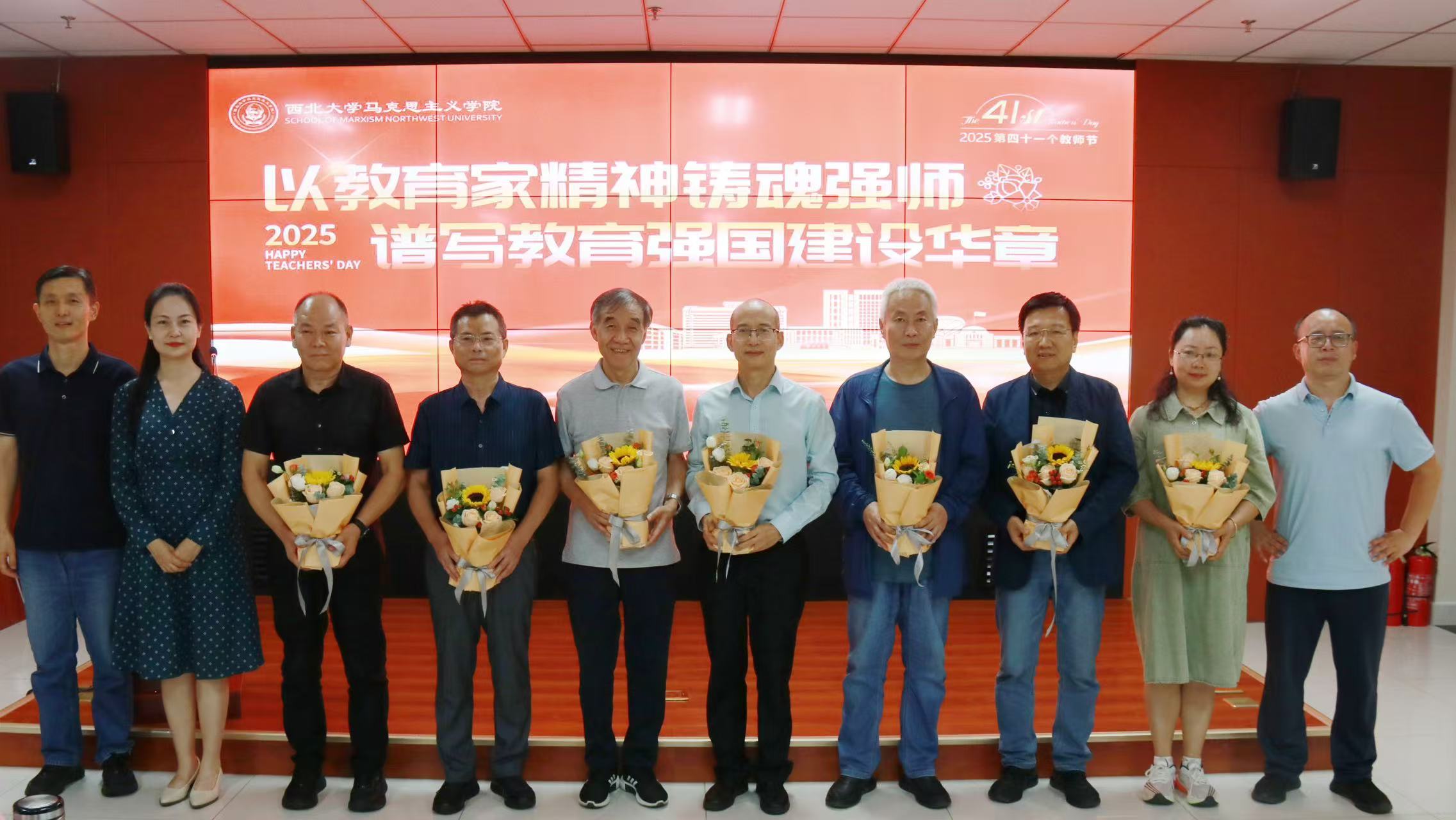 韩凯峰代表学院向全体思政课教师致以诚挚的节日问候,感谢老师们的辛勤付出。他指出,全体教师要铭记践行教育家精神,不忘初心、躬耕教坛,切实担负起立德树人的光荣使命。学院研究生会主席、2024级硕士研究生张典宣读教师节贺信。随后,学院班子成员向从教满30年的老教师、荣休教师和新入职教师敬送了鲜花,向教师们表达最崇高的敬意和最诚挚的感谢。